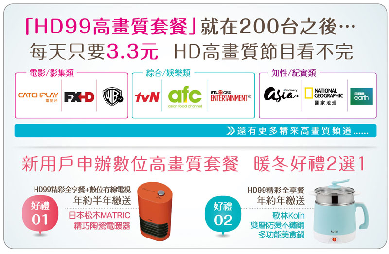 現在辦超級錄影機+HD99高畫質套餐,超優惠價!!! 辦再送好禮!