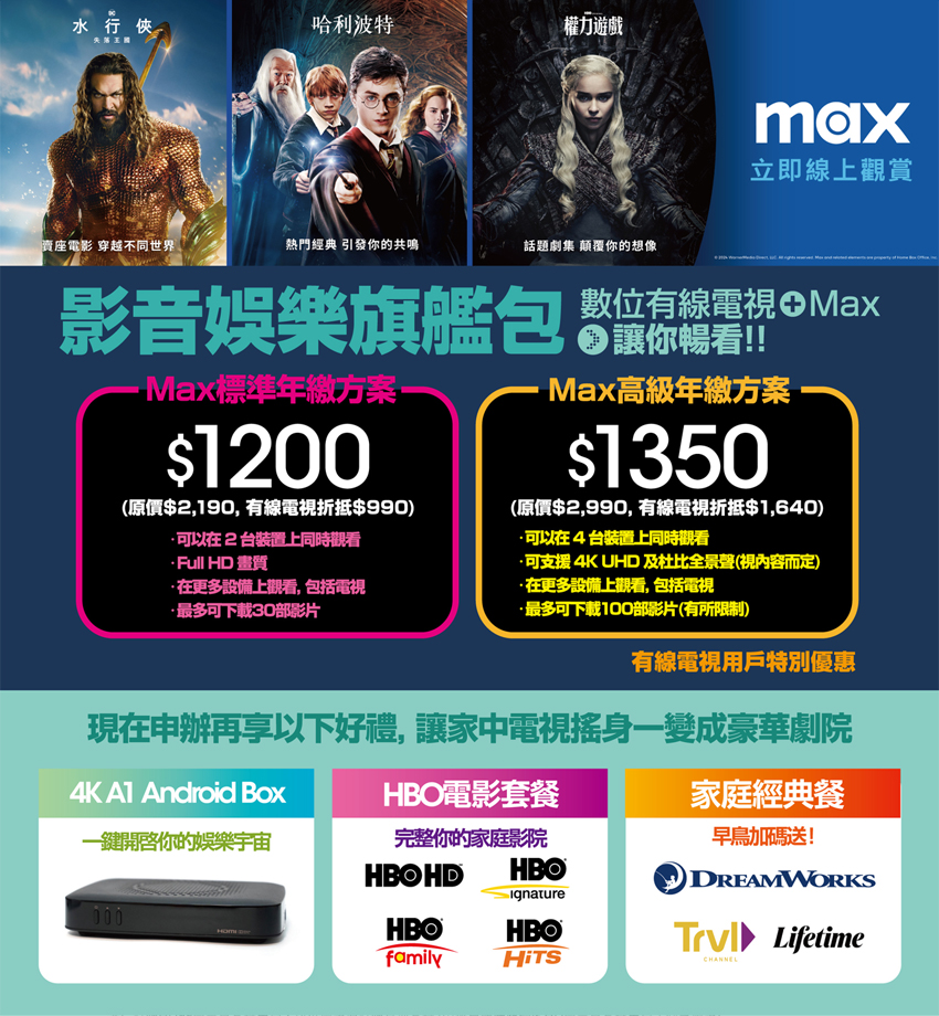 數位有線電視+Max 讓你暢看!!